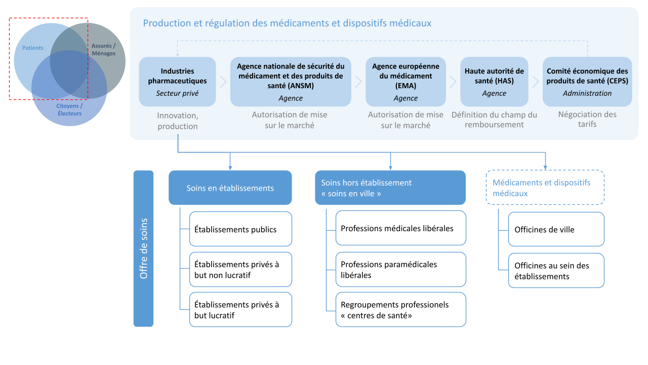 La dichotomie ville/hôpital structure l’offre et les médicaments sont régulés spécifiquement