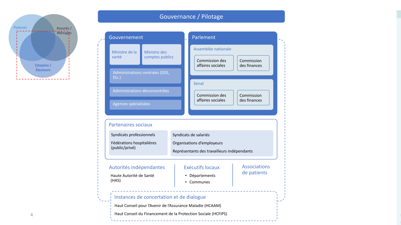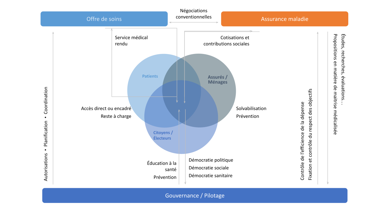 L’individu est un assuré (et les membres de son ménage), qui finance le système de soins